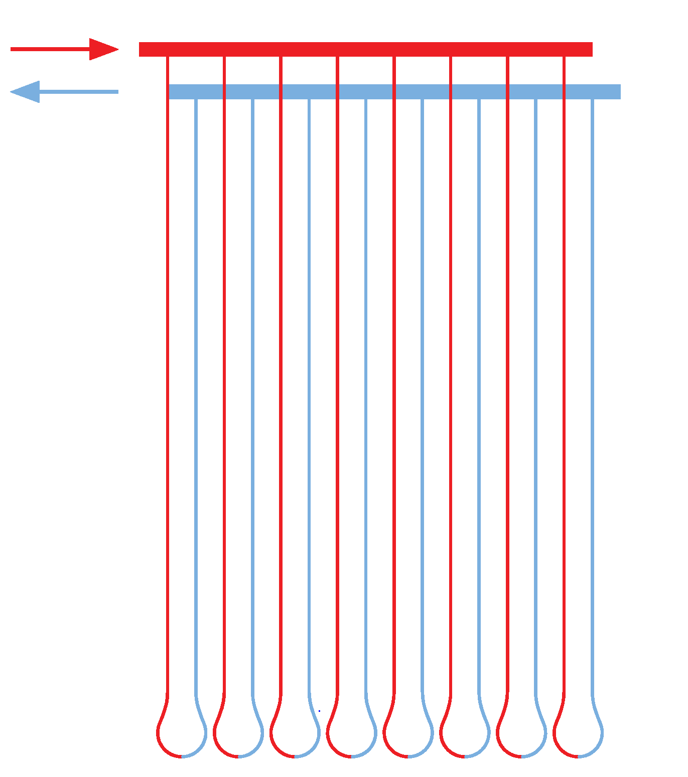 - große Wärmeaustauschfläche dank geringer Kapillarrohrabstände (gleichmäßige Wärmeverteilung auf den Oberflächen)